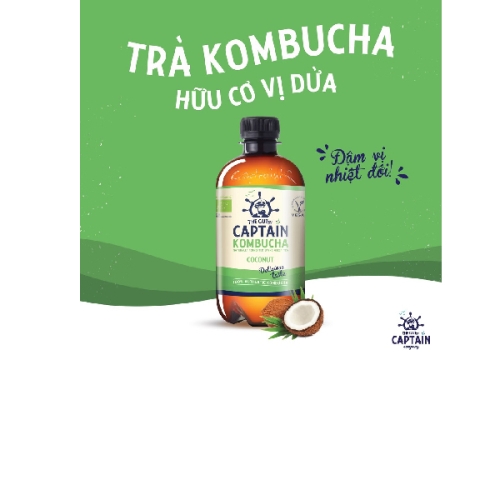 Trà dưỡng sinh Kombucha hữu cơ vị dừa 400ml Captain Kombucha